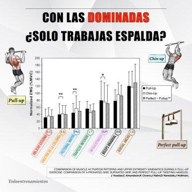 En este estudio se muestra mediante electromiografía (EMG) la activación de diferentes músculos durante la ejecución de 3 tipos de dominadas diferentes: